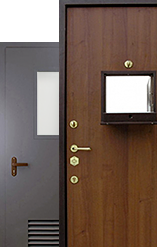 Полотна оснащаются уплотнителем, замками и петлями, механизмами блокировки и защиты от взлома. Практически все модели имеют глазок.